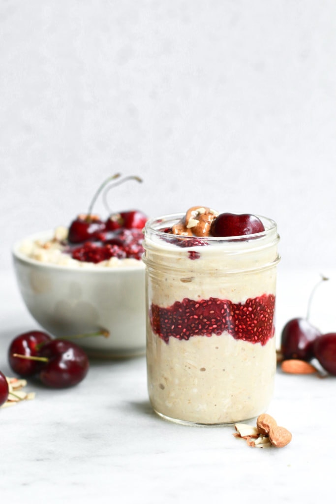 They are easy to make, simply combine oats with some milk, chia seeds and fruit and place them in a jar overnight.